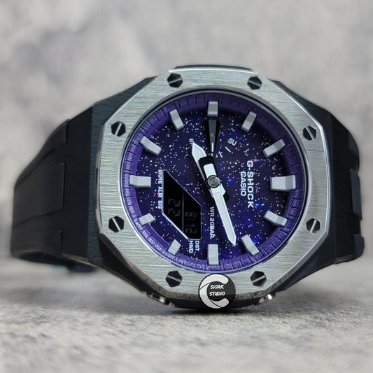 Umarmen Sie Königtum und Einzigartigkeit mit unseren Purple G-Shock Casioak Mods. Diese Uhren verleihen Ihrem Stil eine königliche Note und heben sich als Symbol der Individualität hervor.
