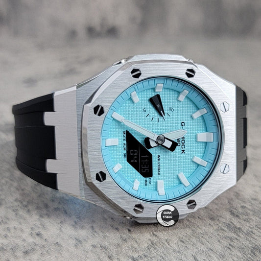 Tauchen Sie ein in Luxus mit unseren Tiffany Blue G-Shock Casioak Mods. Diese Uhren strahlen Eleganz und Stil aus und heben Sie mit einem Hauch von Raffinesse hervor.