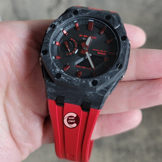 Erleben Sie die Verkörperung von Stärke und Stil mit unseren Carbon Fiber Case G-Shock Casioak Mods. Diese Uhren verfügen über High-Tech-Materialien für eine leichte, aber dennoch robuste Präsenz an Ihrem Handgelenk.