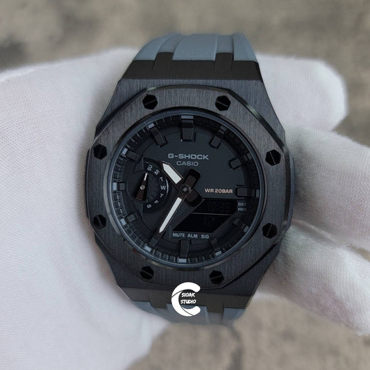 Horloĝo Casioak Mod kun nigra kazo, griza kaŭĉuka rimeno, nigra tempomarko, nigraj ciferplatoj, 42mm