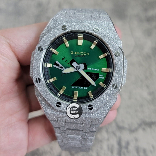 Travivu modestan elegantecon per niaj Frosted Case G-Shock Casioak modifoj. Ĉi tiuj horloĝoj aldonas tuŝon de rafinaĵo al via pojno, perfektaj por ĉiu okazo.