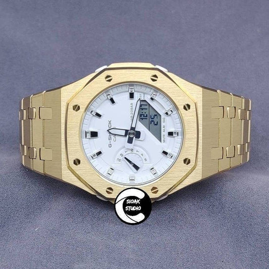 Casioak Mod-horloĝo, ora, metala rimeno, blanka, arĝenta, tempomarko, blankaj ciferplatoj, 42mm