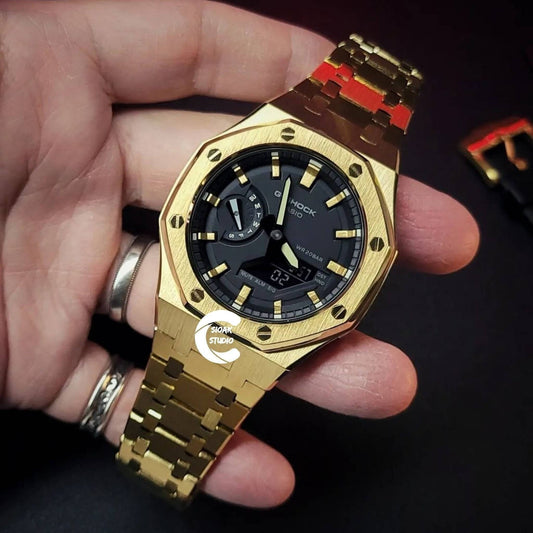 Affichez votre style avec nos mods Gold Case G-Shock Casioak. Ces montres rayonnent d'opulence, alliant durabilité et une touche de luxe.