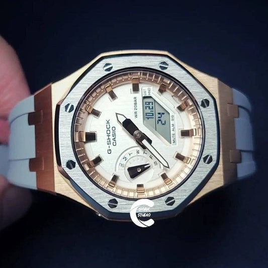 Zrób wrażenie dzięki naszym złotym modyfikacjom G-Shock Casioak. Te zegarki emanują przepychem, łącząc trwałość z nutą luksusu.