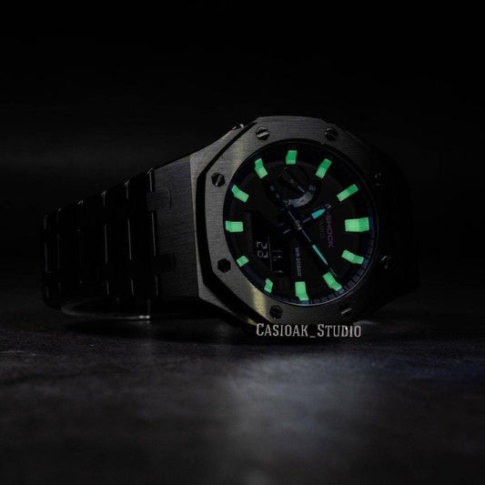 Omfamna sofistikering med våra Full Metal G-Shock Casioak-modifikationer. Tillverkade av premium material, omdefinierar dessa klockor elegans i världen av robusta tidmätare.